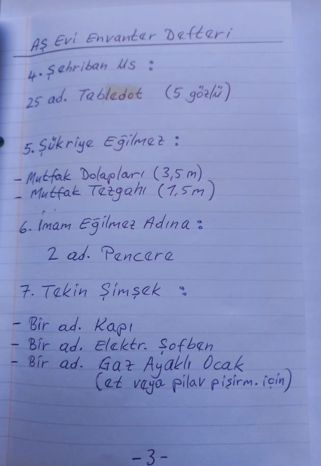 Aş Evi Envanter Defteri